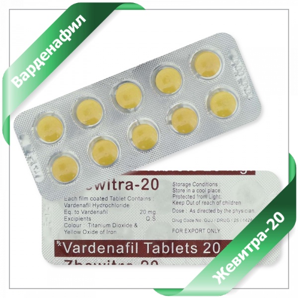 | Каждая таблетка содержит: | 20мг Варденафила |